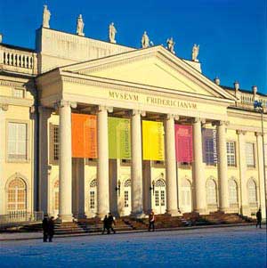Sanat Kriz Zirvesine Davet Ediyorİlki 1955 yılında düzenlenen Documenta Sanat sergisinin onbirincisi Haziran 2002 tarihinde Kassel'de açıldı. Documenta 11’in son derece siyasi olduğu, davet edilen 116 sanatçının siyasi konulara değinen eserlerinden belli olmakta. Ayırımcılık ve ırkçılık, kültürler arası mücadele, ideolojilerin savaşı, kollektif travmalar ve gündelik hayatın neurozları, sanat eserlerinin değindiği konular olarak göze çarpmakta. Ancak Kassel’de protesto ve provakasyon yok, sadece refleksiyon var: Çağımızın sorunları üzerine kafa yoranların bir yarışması gibi. Devamı için --> Yan tarafta Documenta 11'in yer aldığı Museum Fridericianum görülmekte. |