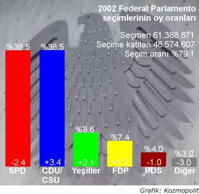 | GÜRSEL KÖKSAL'ın haber-analizi Galip Yeşiller, Mağlup Sosyalistler Almanya'da Sosyal Demokrat-Yeşil Koalisyonu sürüyor. Kayba uğrayan Sosyal Demokratları Yeşiller kurtardı. Seçime katılma oranı yüzde 79.1. Mecklenburg - Vorpommern'de eyalet seçimlerinde ise, sosyal demokratlarla sosyalistler Meclis'te çoğunluğu korudu. [Devamı için -->]